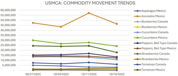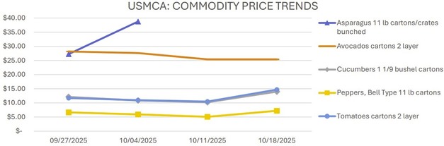 As the fall season progresses, supply and pricing trends vary across key fruit and vegetable categories imported and traded through U.S. ports. The following summary highlights current movement and pricing conditions for asparagus, avocado, blueberry, cucumber, green bell pepper, strawberry, and tomato.