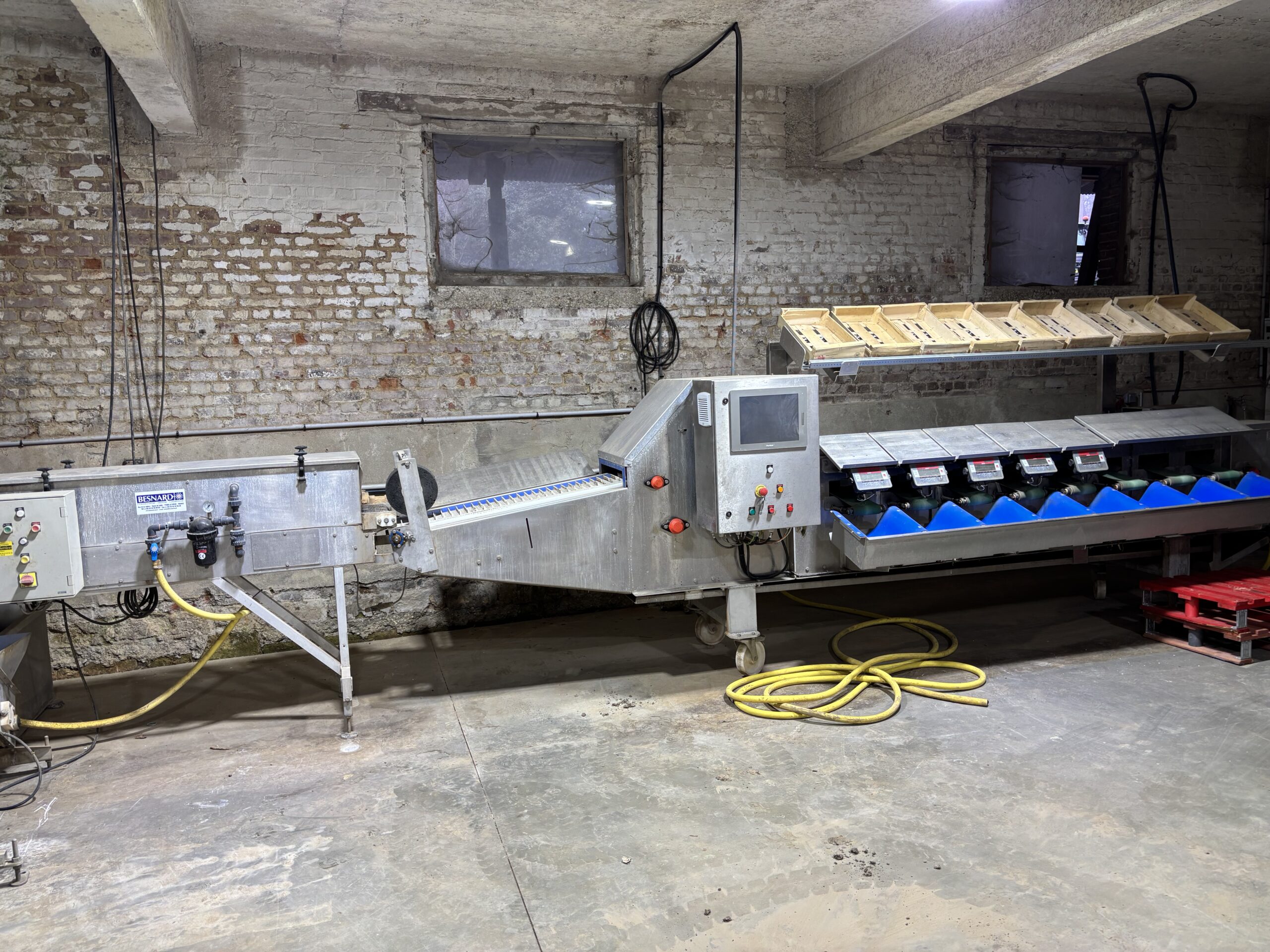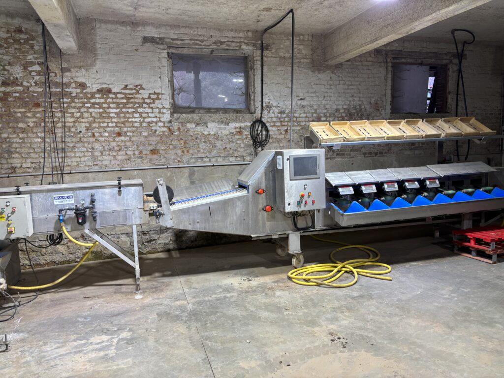 Vente d’une calibreuse d’occasion pour Asperges de marque Besnard en parfaite état 8 sorties Calibrage par oeil optique