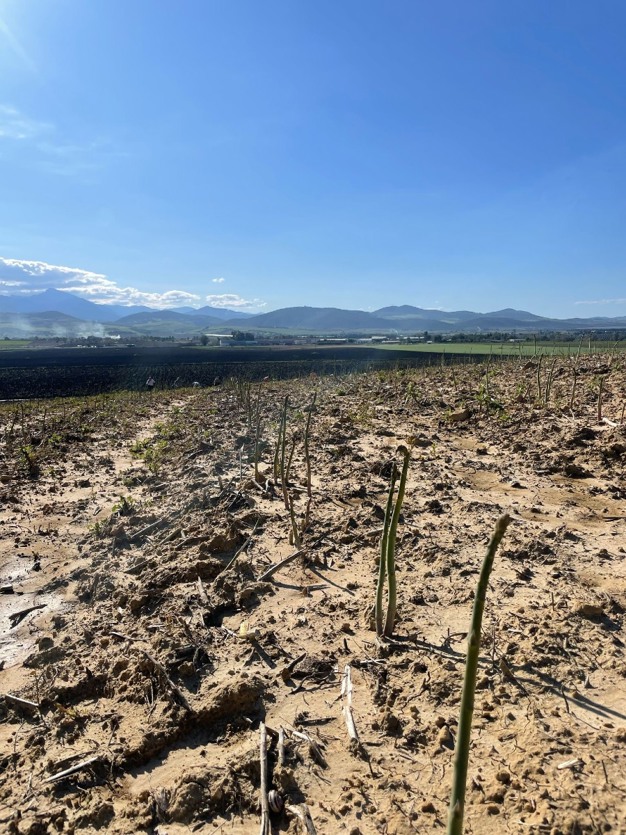 Gestionamos dos explotaciones al aire libre en Andalucía donde cultivamos solo espárrago verde. Normalmente la cosecha comienza en febrero, pero este año se retrasó algo por las lluvias persistentes. Desde 2026, planeamos cosechar en España de febrero a octubre, ocho meses. Los cuatro meses restantes hacemos puente, y cuando el producto español no cubre toda la demanda, importamos principalmente desde México y Perú.