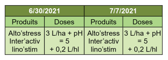 Estos datos se inscriben en un enfoque experimental destinado a evaluar la eficacia de ALTO’STRESS® así como su impacto sobre la biodiversidad. En ausencia de AMM de protección, el producto solo puede utilizarse dentro de su categoría de sustancia natural de uso bioestimulante (SNUB).